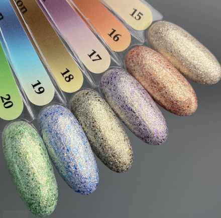 Искрящийся гель-лак KLIO из коллекции Trend collection подарит праздничное настроение! Создавайте яркие акценты с помощью гель-лака с кусочками разноцветной потали на жемчужной основе. Тонкая мягкая кисть помогает экономично расходовать материал, не забирая на себя излишки материала. Нежная текстура и плотный пигмент позволяют легко нанести гель-лак в один слой.
